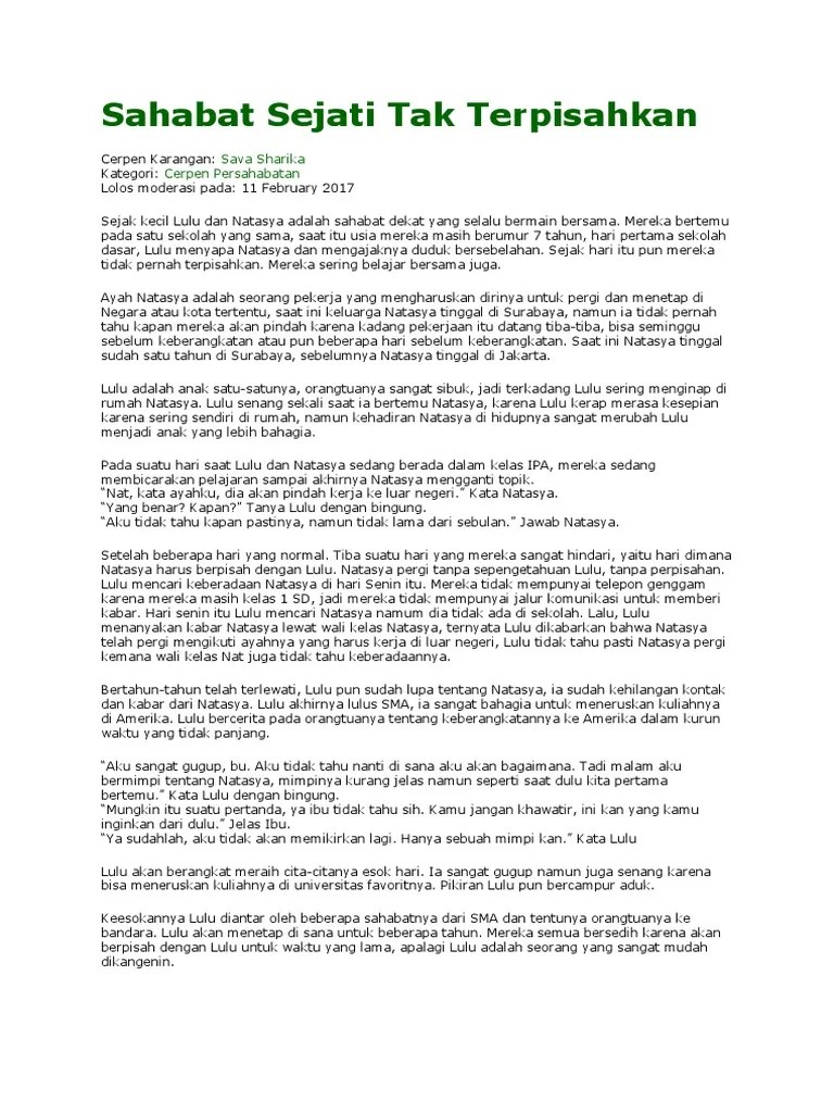 Unsur instrinsik ekstrinsik cerpen sebuah cerpen memiliki 2 jenis unsur . "baik bu!" jono bergegas berangkat ke sekolah bersama kedua sahabatnya tino dan paijo. Pada hari itu, di mana kejora tidak masuk ke sekolah selama hampir 2 minggu karena sakit, kalila mulai menjalankan rencananya. Contoh cerpen tentang persahabatan di sekolah are a topic that is being searched for and liked by netizens now. Setelah bu guru keluar,mila pun lari,lalu ku ikuti dia.ternyata mila lari ke taman dan duduk di bangku taman sekolah.